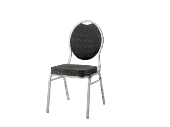 Dieser Klassiker findet auf vielen Veranstaltungen seinen Platz. Neben dem normalen Bankett wird er auch gerne mit einer optional erhältlichen Husse in weiß auf Hochzeiten und Trauungen eingesetzt. Die langlebige Konstruktion des Stuhls besteht aus pulverbeschichteten Stahlrohren. Die Sitzfläche ist mit einem dekorativen Rautenmuster versehen sowie sehr robust gepolstert.