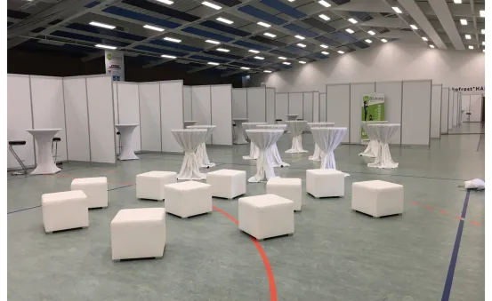 Gerne stellen wir dir den Tisch auch auf passenden Transportwagen zur Verfügung.
